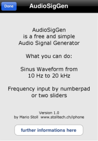 AudioSigGen is a Audio Signal Generator for the iPhone and this is the website about this app.